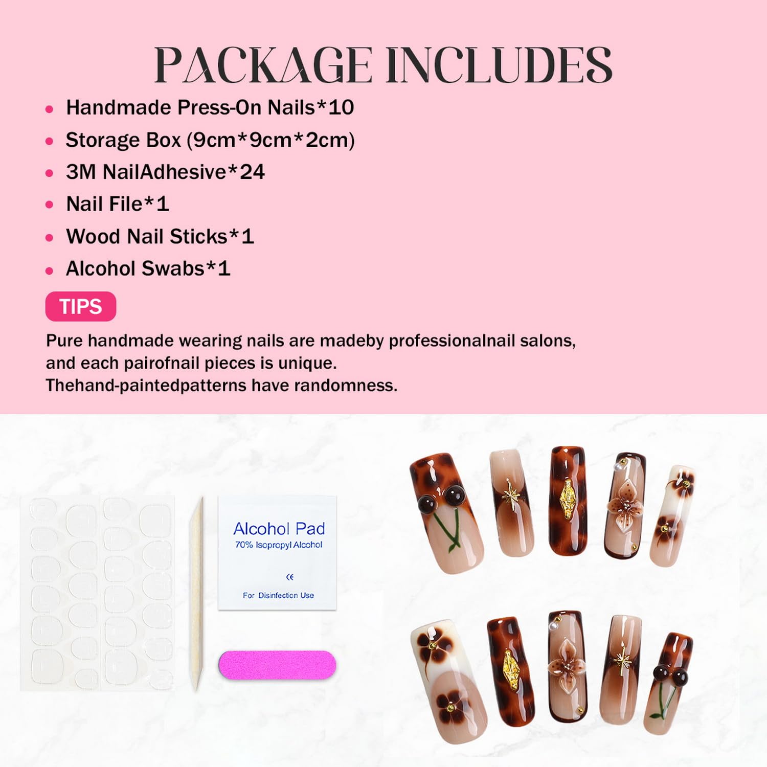 63 reviews for Brown French Tip Press on Nails Long Coffin Fake Nails Handmade Press on Nails 3D Luxury Flower and Cherry Embossed Designs Muti-Layer Gel Thick False Nails Glossy Acrylic Nails…