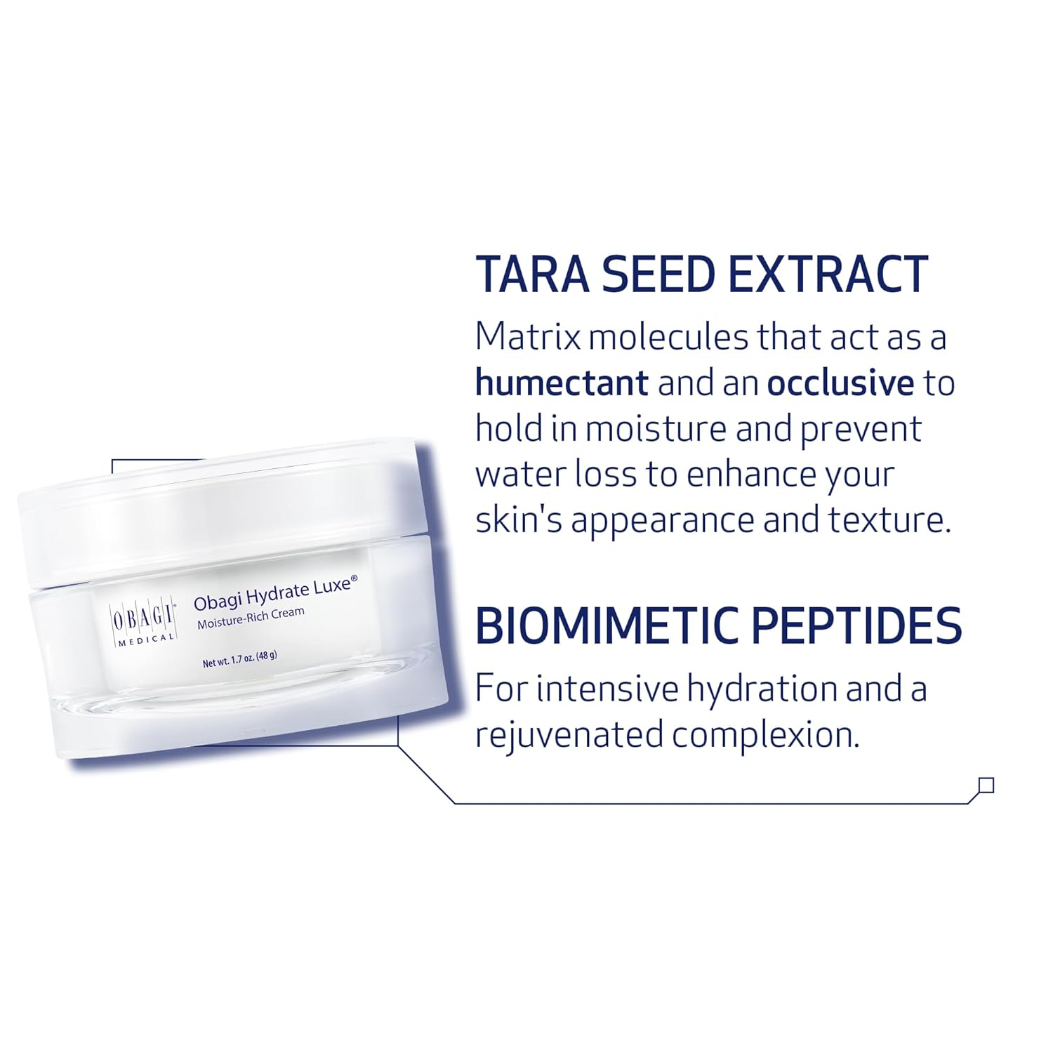 Obagi Hydrate Luxe Ultra-Rich Moisturizer – Non-Comedogenic with Tara Seed Extract and Biomimetic Peptides – Night Face Cream for Dry, Sensitive, or Aging Skin